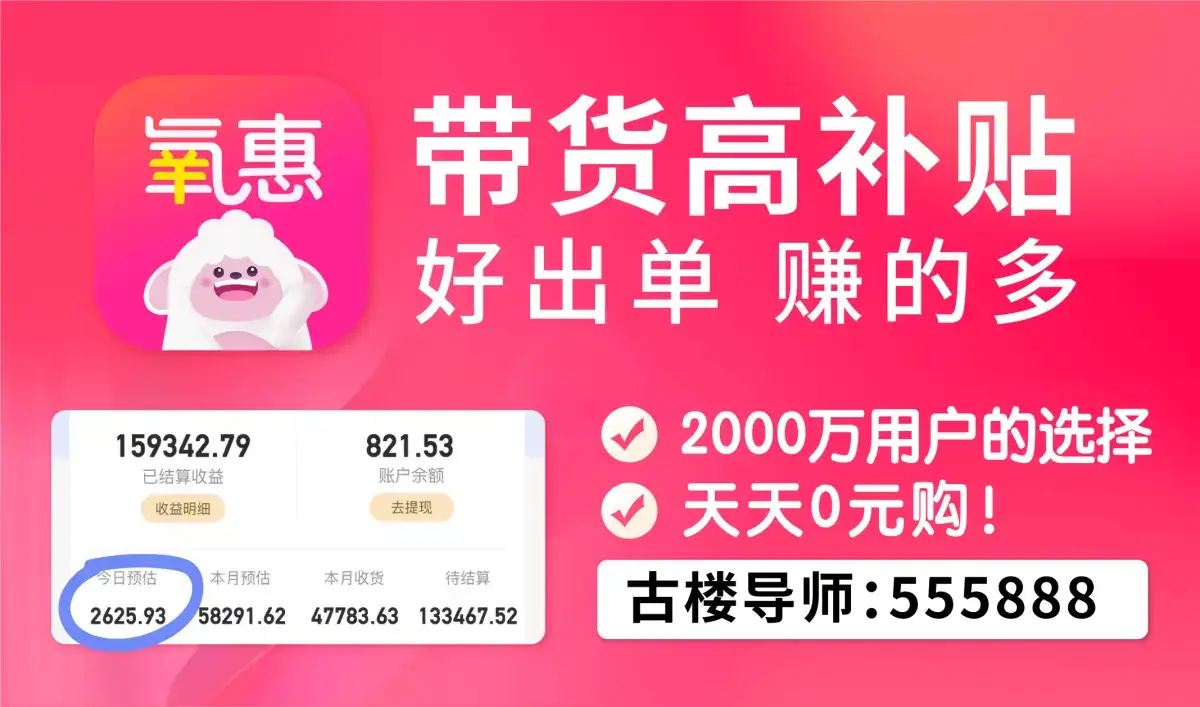 氧惠APP是与以往完全不同的抖客+淘客app!2024全新模式,我的直推也会放到你下面。主打:带货高补贴,深受各位带货团队长喜爱(训练营导师每天出单带货几万单)。注册即可享受高补贴+0撸+捡漏等带货新体验。送万元推广大礼包,教你如何1年做到百万团队。古楼导师氧惠邀请码555888,注册送万元推广大礼包,教你如何1年做到百万团队。我整理了一份《最新12种引流方法》,关注「善士思维笔记」回复:善士,即可领取哦。