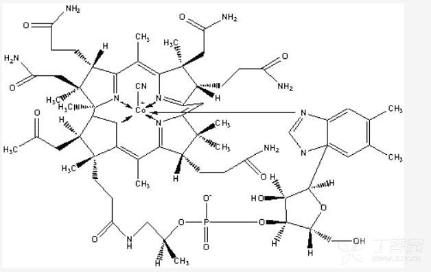 化学名称:Coα-[α-(5,6-二甲基苯并咪唑基)]-Coβ氰钴酰胺
