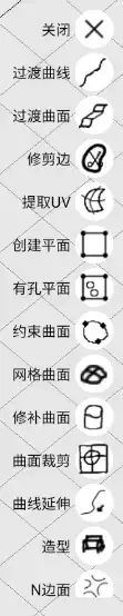 ① 扩展样条曲面工具栏包括一些建模过程中常用的建模工具。一般是针对曲线和曲面的。
