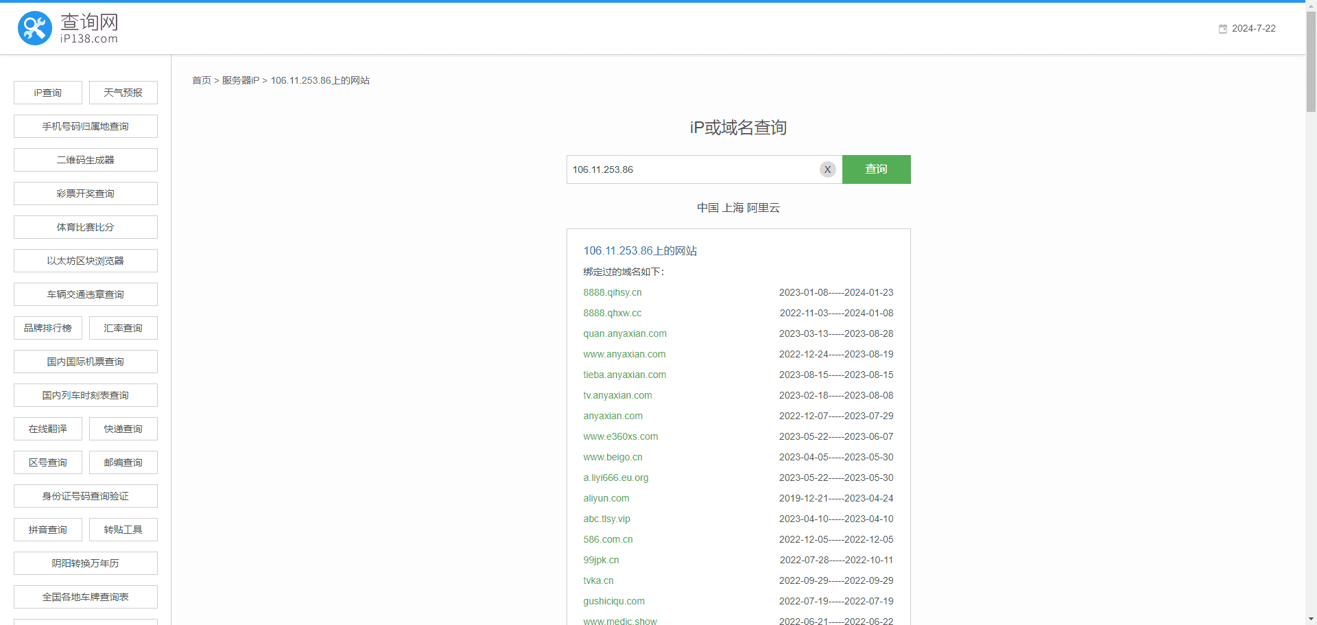 同IP查询:使用专业的查询工具(如查询网ip138.com)来查找与目标网站共享相同IP地址的其他网站。