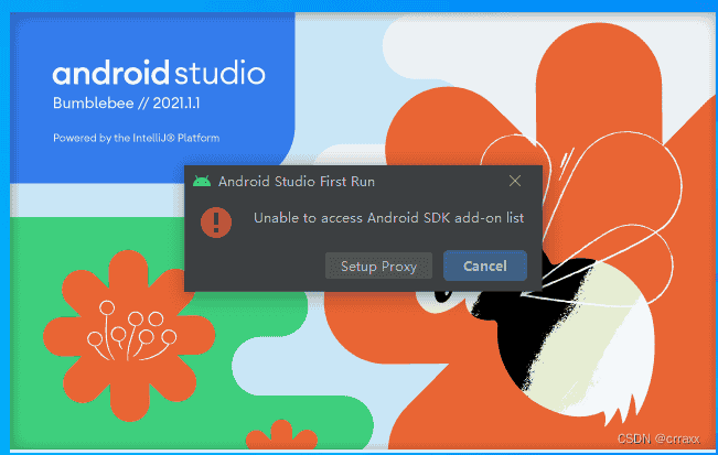问题:第一次打开新下载好的Android Studio时出现以下错误提示框,显示Unable to access Android SDK add-on list