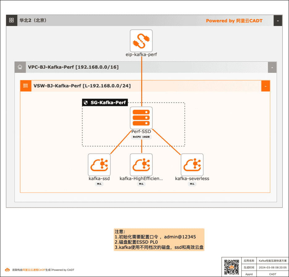 借助 CADT 迅速的搭建 Kafka 不同类型的实例,并构建压测环境,快速对不同的实例配置的性能进行压测,以验证不同配置对性能影响,帮助客户快速的做出具体规格的选型。