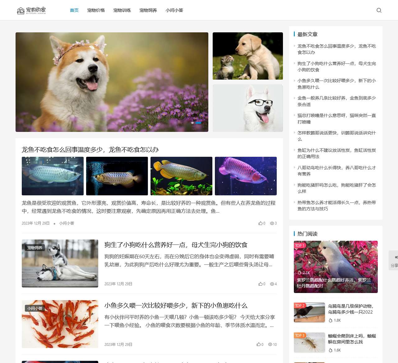 欢迎来到宠物的家!作为专业的宠物资讯平台,我们致力于为新手宠物爱好者提供全面、实用的养宠经验分享。无论你是刚刚入门的宠物新手,还是已经拥有多年经验的宠物专家,这里都有适合你的精彩内容。以下是我们网站首页提供的主要服务内容: