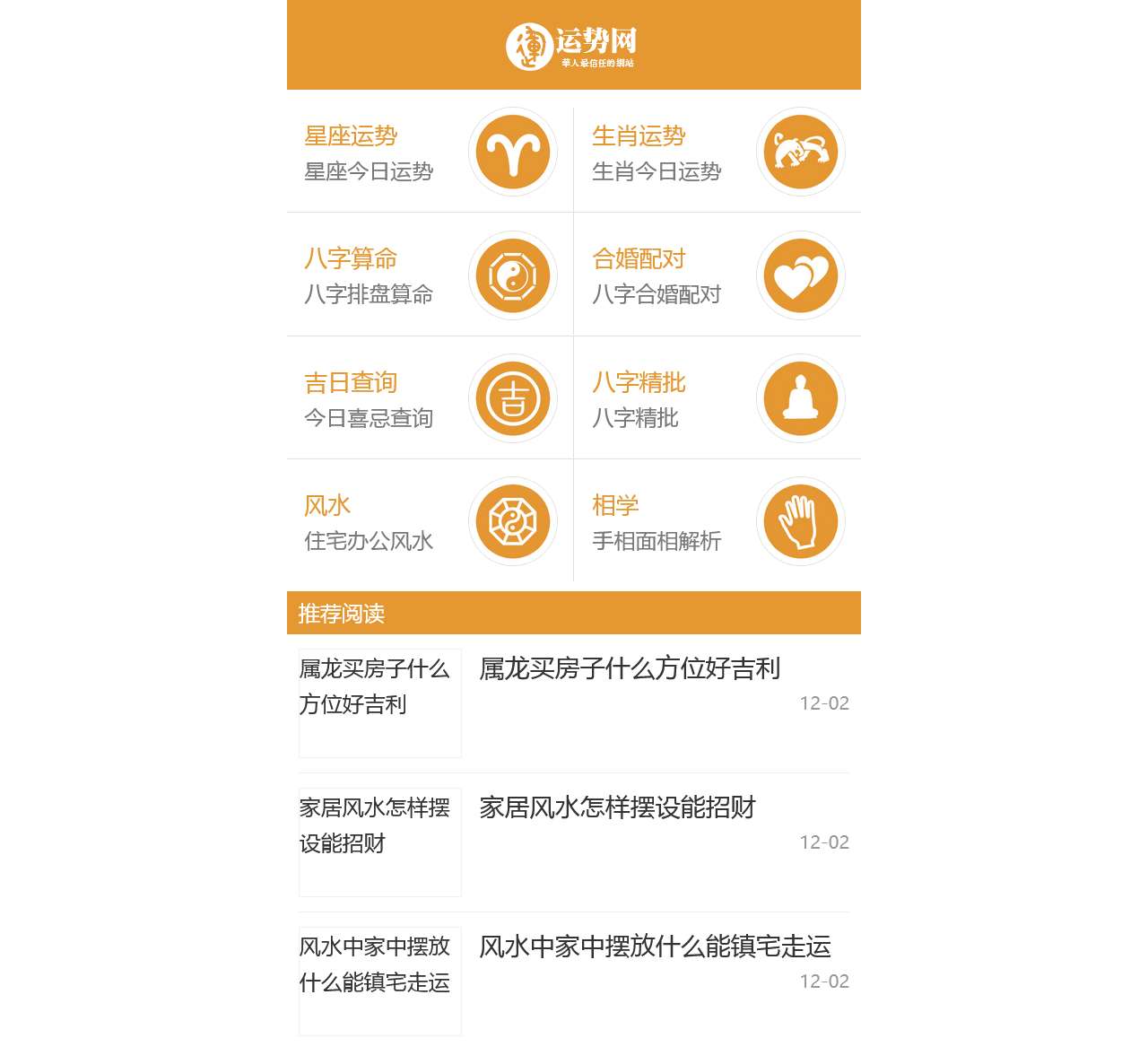 运势网是全球华人最信任的命理类网站,网站为用户提供星座运势、算命、风水八字、塔罗占卜、心理测试、生肖查询等各类性格及配对信息。