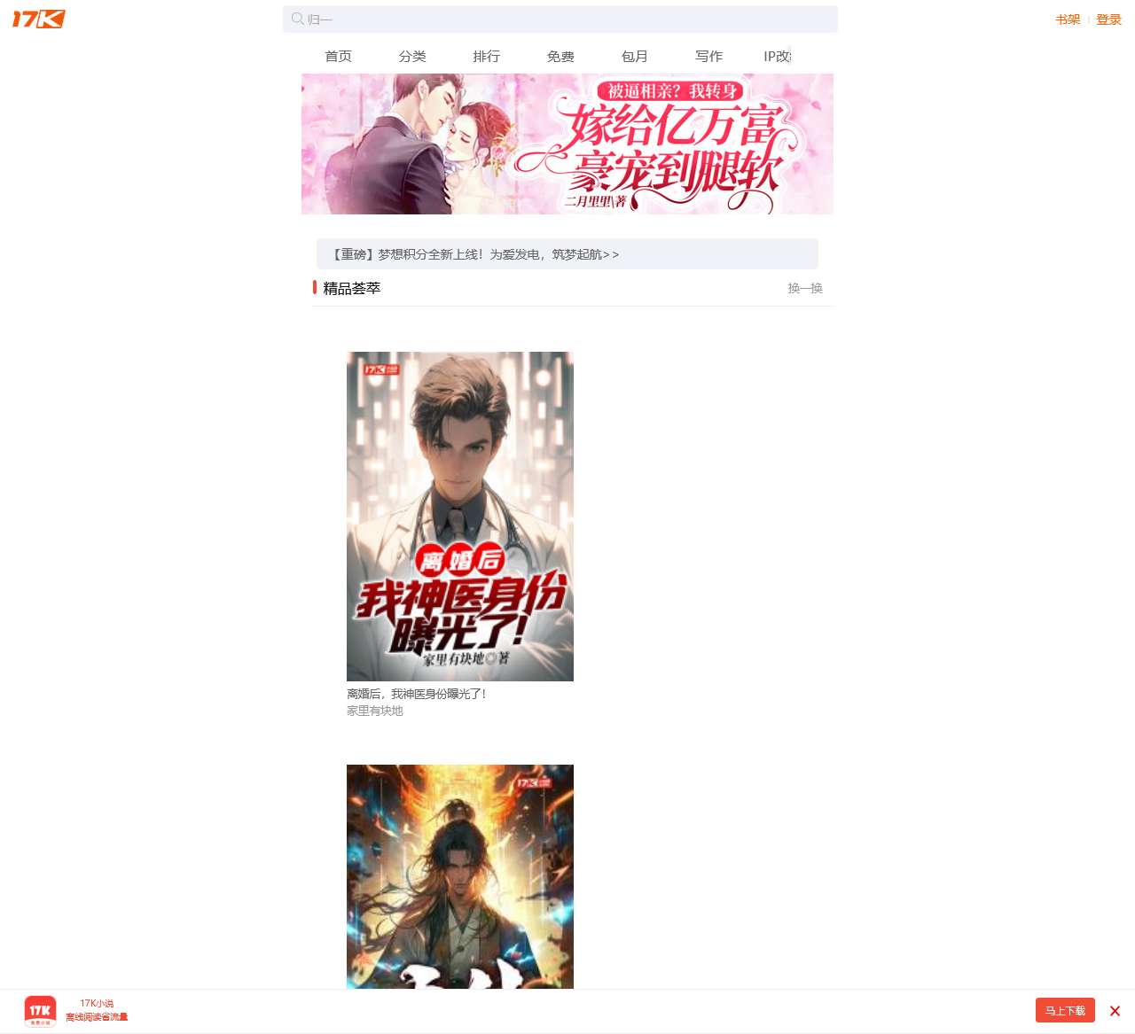 欢迎来到17K小说网,您的阅读乐园!在这里,我们提供丰富多彩的小说内容,让您畅游于文学的海洋。无论您喜爱玄幻、都市、穿越还是言情,我们都有最新、最热门的小说等您品味。登录后,更能享受到专属的个性化推荐,让阅读体验更加贴心。