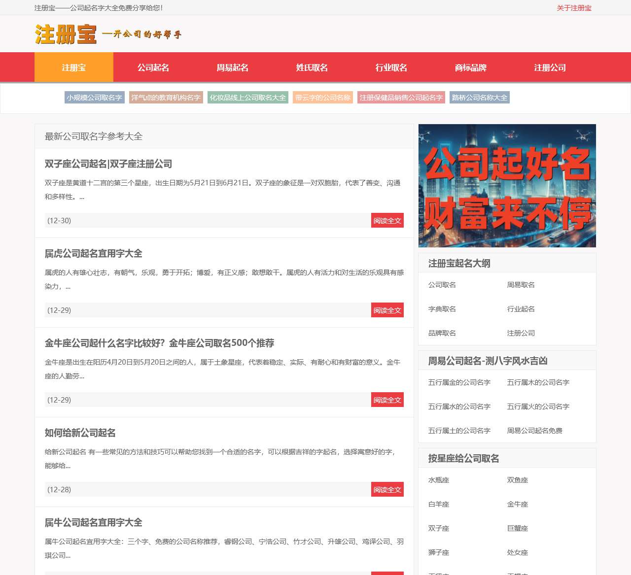 | 行业涵盖 | 注册公司、商标品牌、行业取名等 |