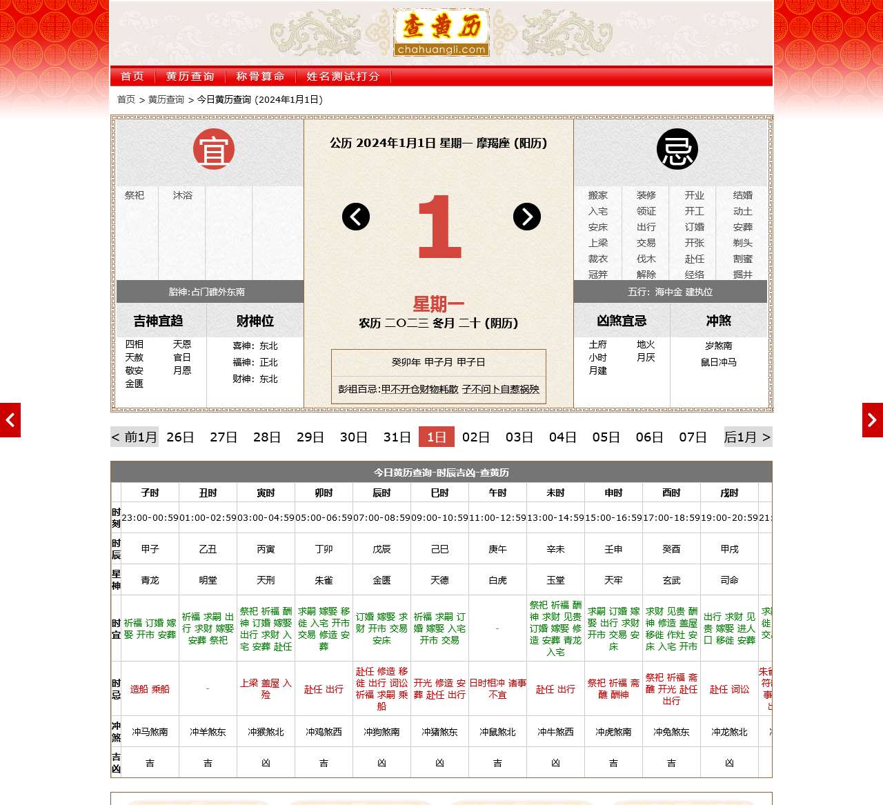 查黄历网(chahuangli.com)提供专业的黄历查询,万年历老黄历查询2023年黄道吉日,根据黄历选择结婚吉日,搬家吉日,开张吉日,领证吉日,订婚吉日等等。