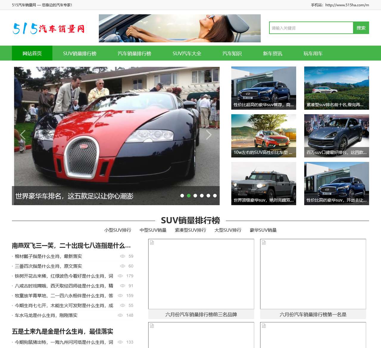 欢迎来到515汽车销量网,您的SUV车型大全和汽车销量排行榜的专业指南。我们为您提供全面的汽车知识、新车资讯以及各类SUV车型推荐。无论您是寻找10万内的SUV车型,还是关注世界豪华车排名,我们都有详尽的介绍和推荐。