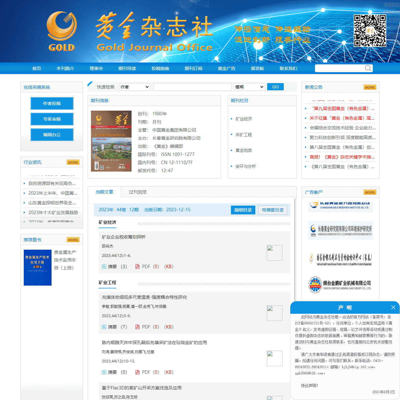金杂志社致力于为矿业专业人士提供最新的黄金产业信息、技术研究和市场趋势。我们汇集了行业内资深的理事会成员,通过权威的期刊导读、精选当前文章,为读者呈现矿业领域的前沿知识。