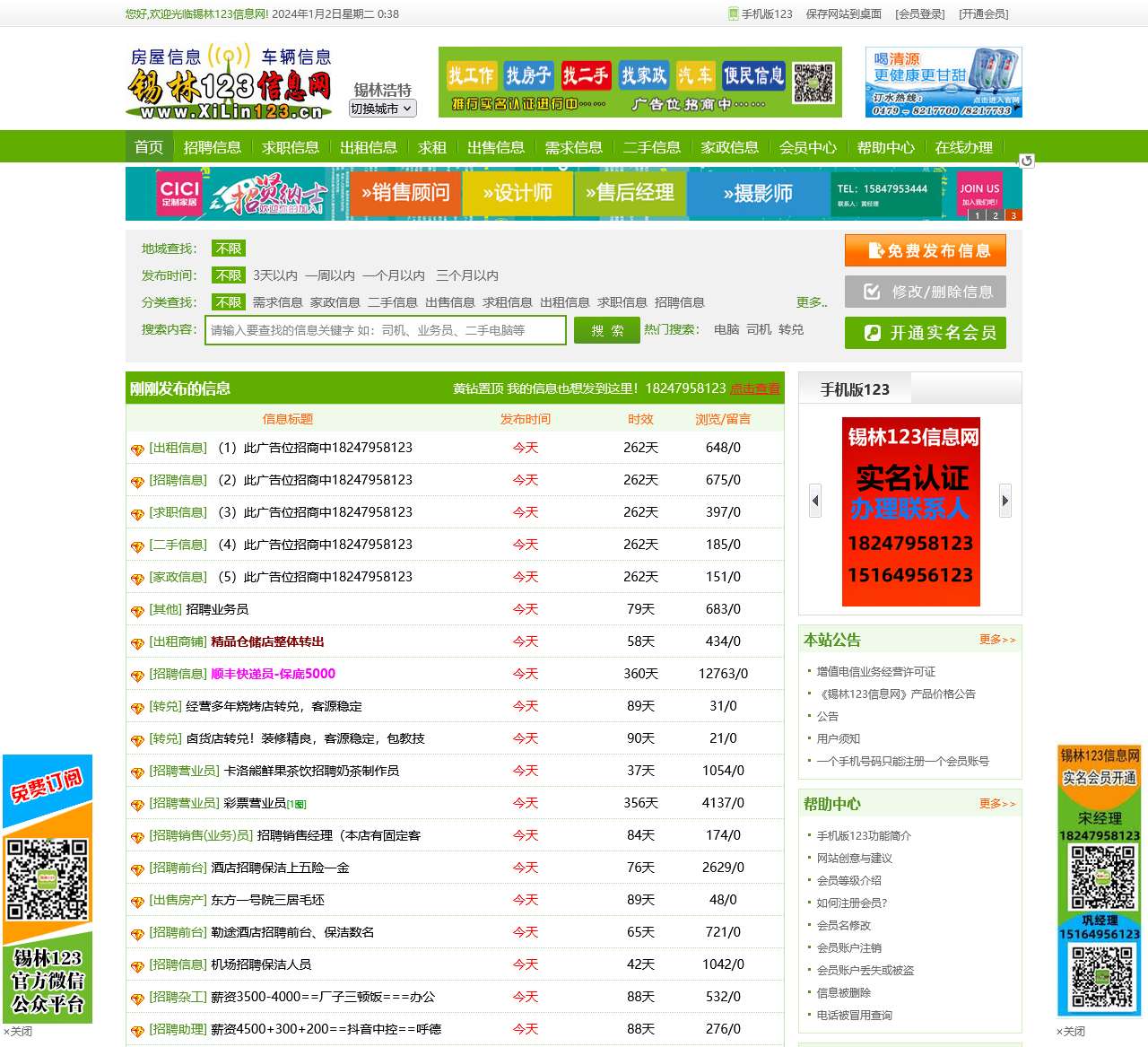 锡林123信息网是锡林浩特市地区领先的综合性信息平台,为用户提供招聘信息、求职信息、出租信息、求租信息、出售信息、需求信息、二手信息、家政信息等全方位服务。无论您是求职者还是招聘企业,都能在这里找到满足需求的信息。