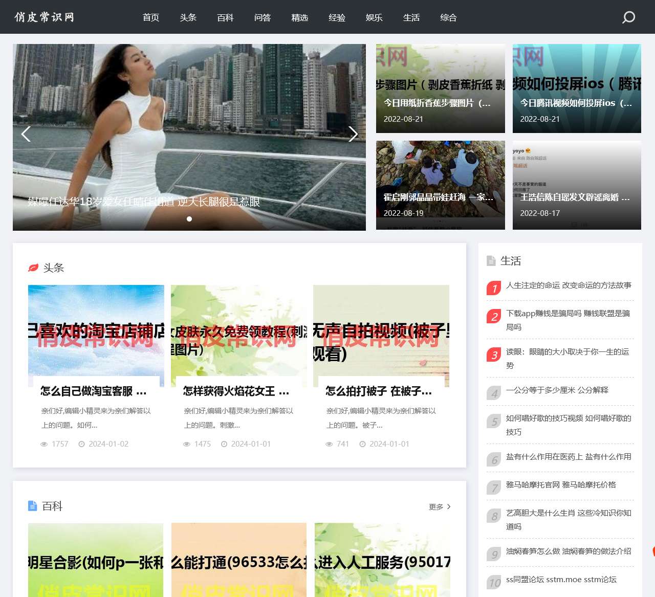 欢迎来到俏皮常识网,一个专注分享发现美的平台。我们汇聚了头条新闻、丰富百科、热门问答、精选经验、娱乐资讯、生活技巧以及综合内容,为您提供轻松愉快的阅读体验。
