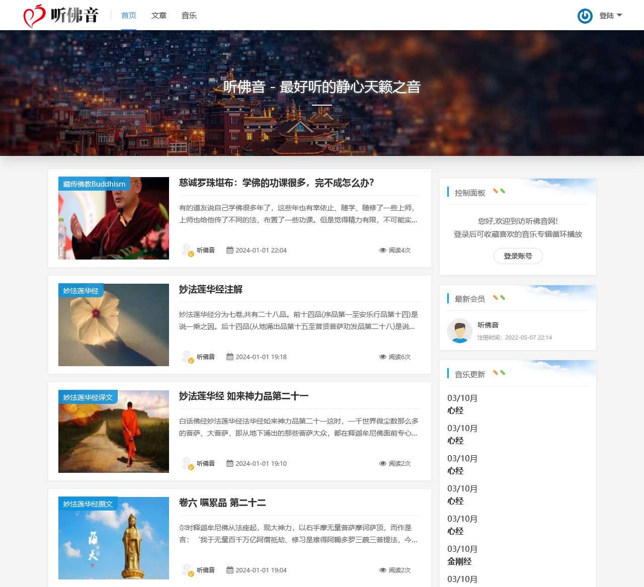 欢迎您在“听佛音”寻找灵感,静心聆听,感受慈悲与智慧的融合。愿您在这片宁静的音乐空间中,找到内心的平静与安宁。