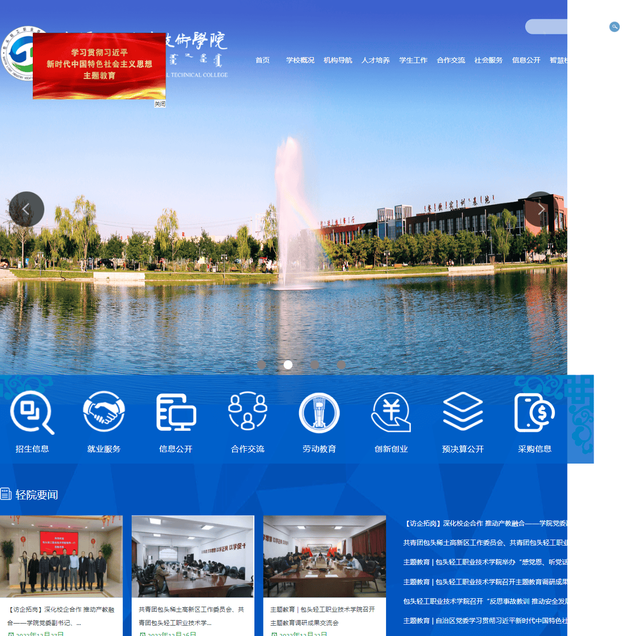 包头轻工职业技术学院,创建于XX年,是一所致力于培养卓越人才的职业技术学院。学校坐落于包头市,秉承着“德艺双馨,知行合一”的办学理念,不断推动教育创新和学科发展。