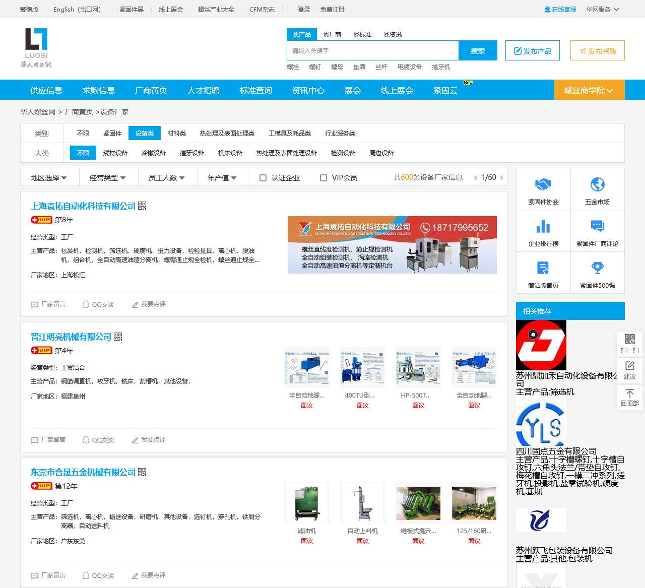 华人螺丝网-设备厂家,展示设备优质的工厂、公司信息。采购设备商品寻找供应商、企业,查询供应商服务信息、联系方式就来华人螺丝网紧固件厂商黄页