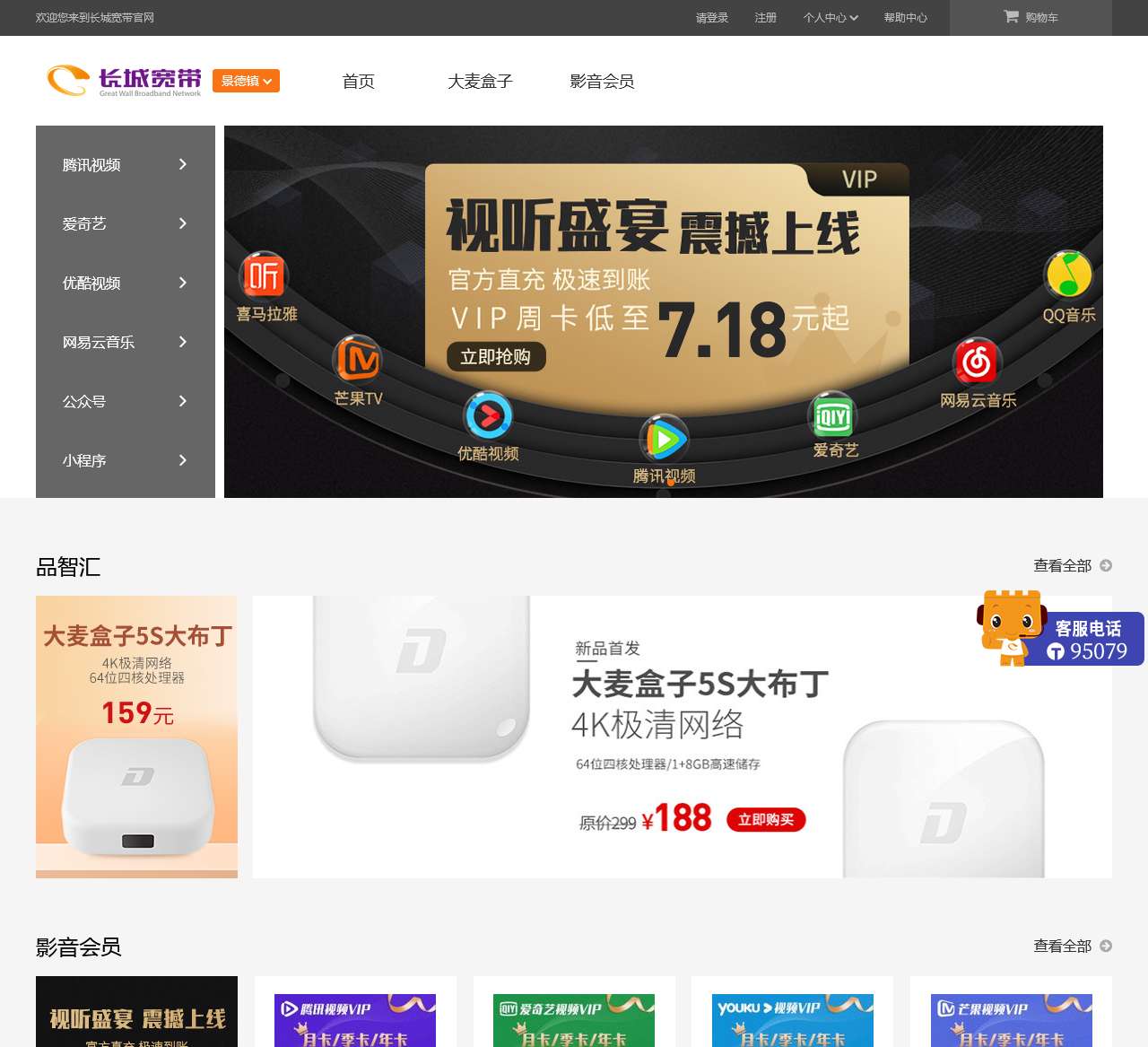 长城宽带商城是长城宽带官方网上营业厅,为您提供长城家庭宽带1000M、500M、300M、100M、50M等资费套餐在线新装办理、宽带续费、长城移动170话费充值、路由器、大麦盒子等外设数码产品在线购买咨询及95079售后服务