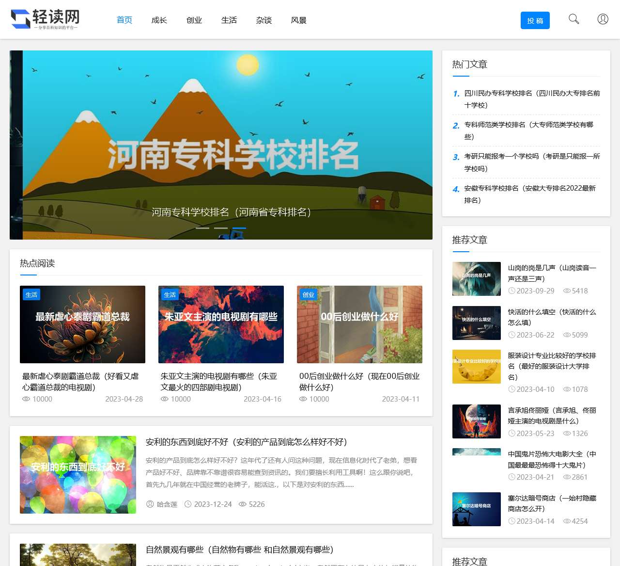 轻读网提供关于成长、创业、生活、风景、历史等领域知识,是分享百科知识的平台.