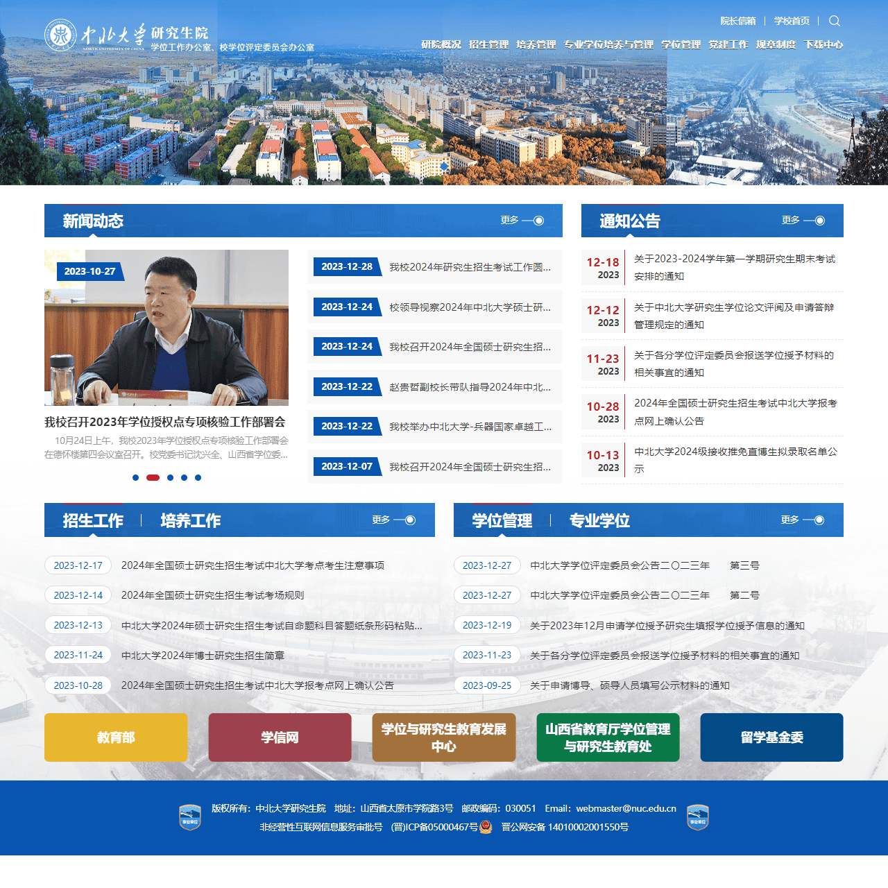欢迎访问中北大学研究生院的官方网站,我们致力于提供全面的研究生培养与管理服务。以下是我们网站首页涵盖的主要内容: