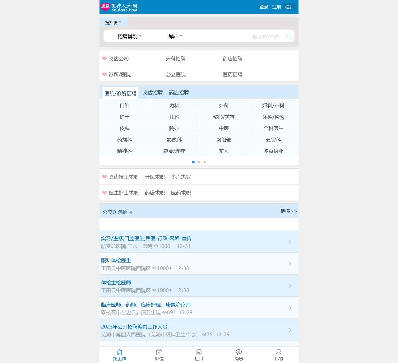 - 牙科招聘: 包括口腔技工、牙医等各类职位。