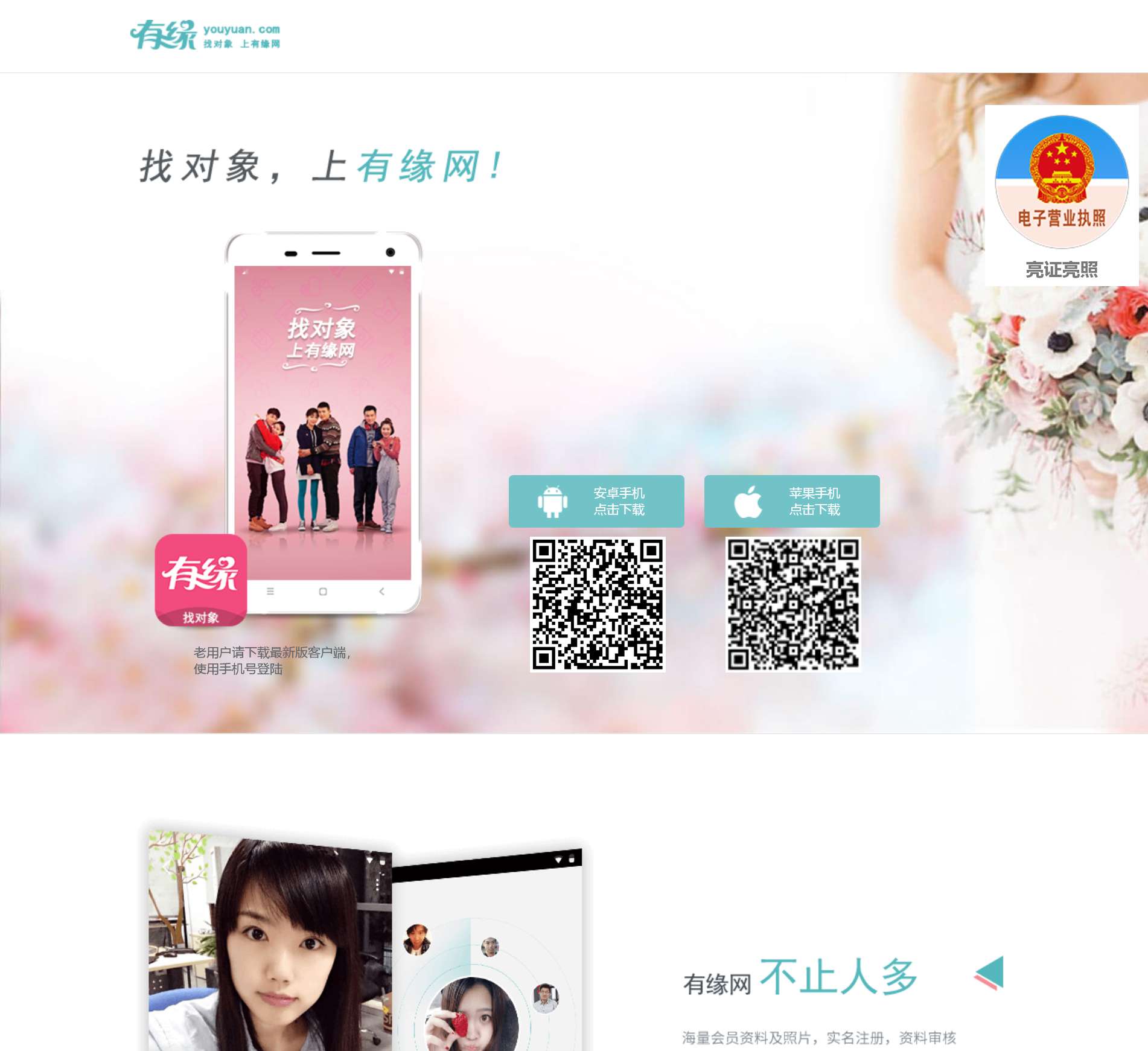 有缘网是国内领先的大众婚恋交友移动互联网平台,专注于为最广泛的年轻单身男女婚恋交友创造更多机会和可能。找对象,上有缘网!