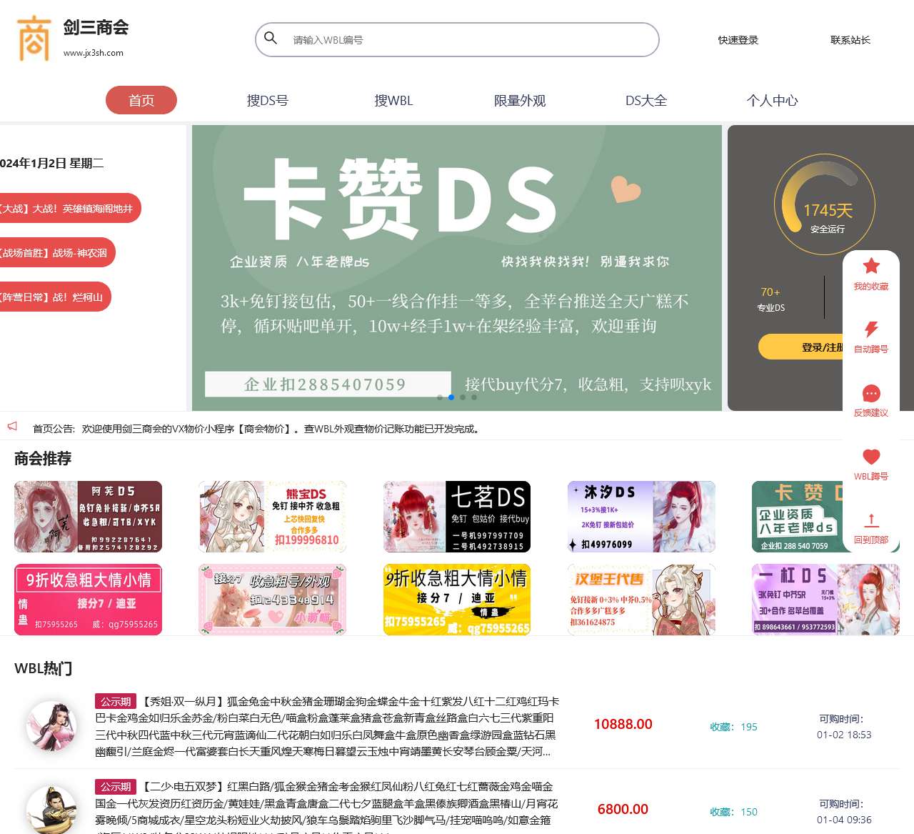 剑三商会信息收录于互联网,包含万宝楼、贴吧、剑三代售等多渠道账号信息,是账号最全、功能最人性化,好评最高的剑三蹲号搜号平台
