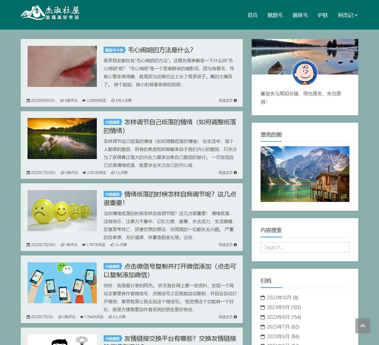 欢迎来到杰淑社屋,这是一个专注于分享兴趣爱好和打造美好生活的小屋。在这里,我们涵盖了多个主题,包括脱唇毛、脱体毛、护肤、阿杰记、住户生活以及兴趣爱好。通过精心整理的内容,我们旨在为您提供有价值的信息和愉快的阅读体验。