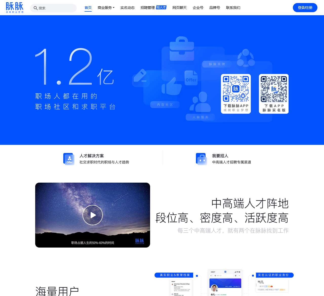 1.2亿职场人都在用的职场社区和求职平台,基于“实名/职业认证”和“人脉网络引擎”帮助职场人拓展人脉、交流合作、求职招聘,收获更多机遇。