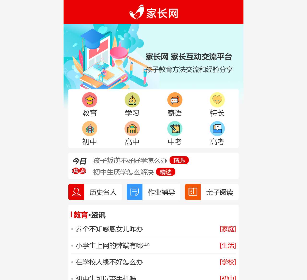 欢迎来到家长网,您的家庭教育互助平台。家长网致力于为家长提供全方位的教育支持和互动交流的平台,让家庭教育变得更加科学、愉快和有效。