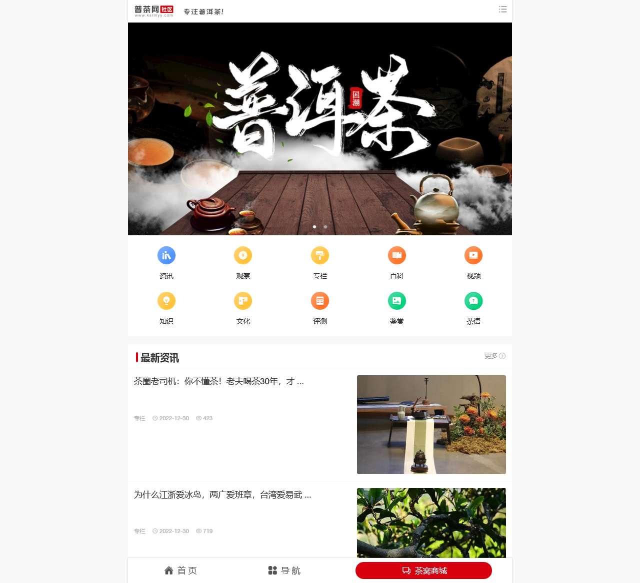 普茶网是一个致力于普洱茶文化传播和知识分享的专业社区。我们汇集了丰富的资讯、深刻的观点、专业的专栏、全面的百科、精彩的视频、实用的知识,为广大普洱茶爱好者打造了一个全面的学习交流平台。