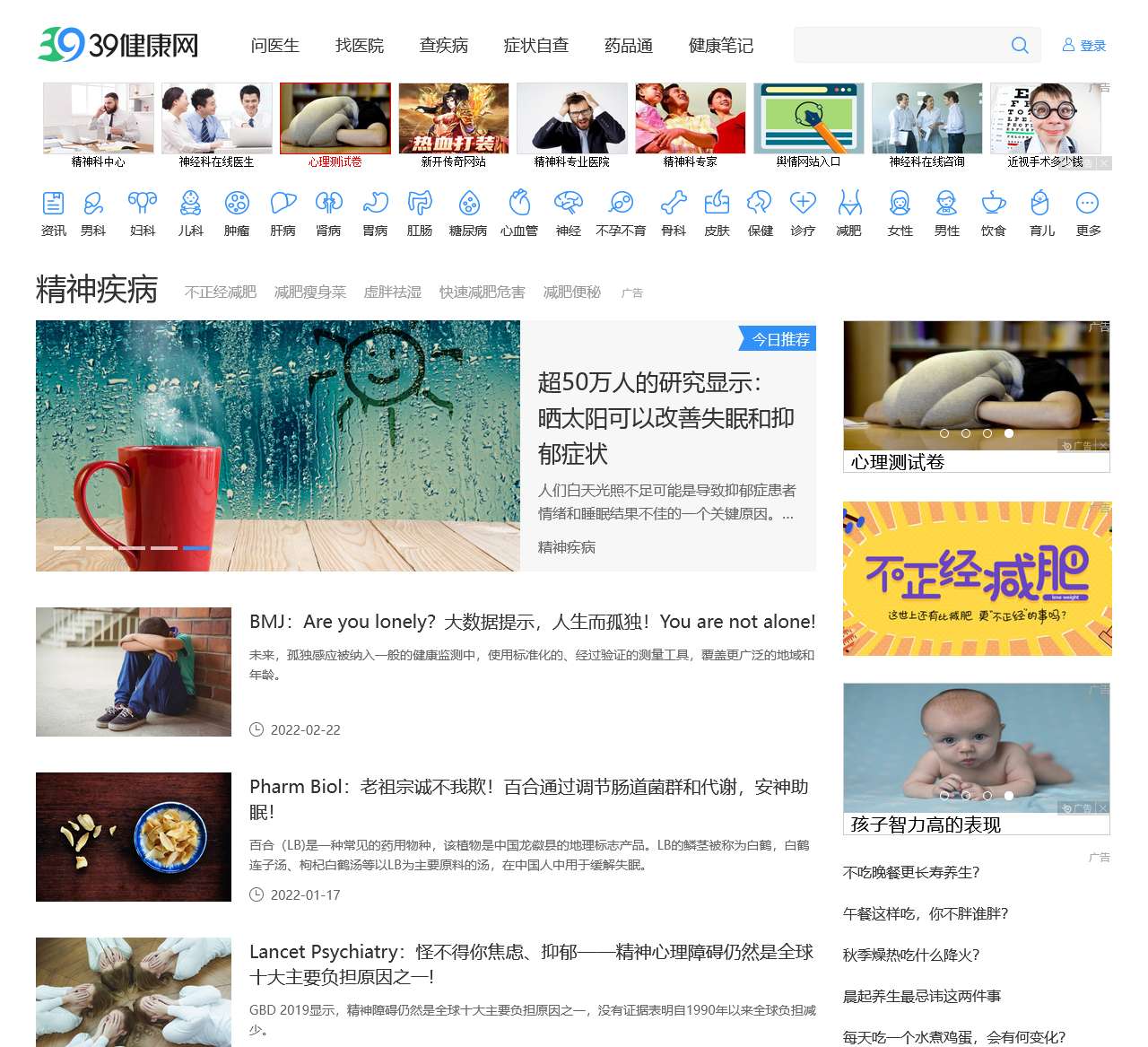 欢迎访问39精神科疾病,中国专业精神科疾病网站。我们致力于为广大网友提供全面的精神科健康服务,包括症状查询、专科医院搜索、精神科疾病资讯、药品通等多项实用功能。通过我们的平台,您可以方便地了解各种精神科疾病,获取专业的医疗提议和健康信息。