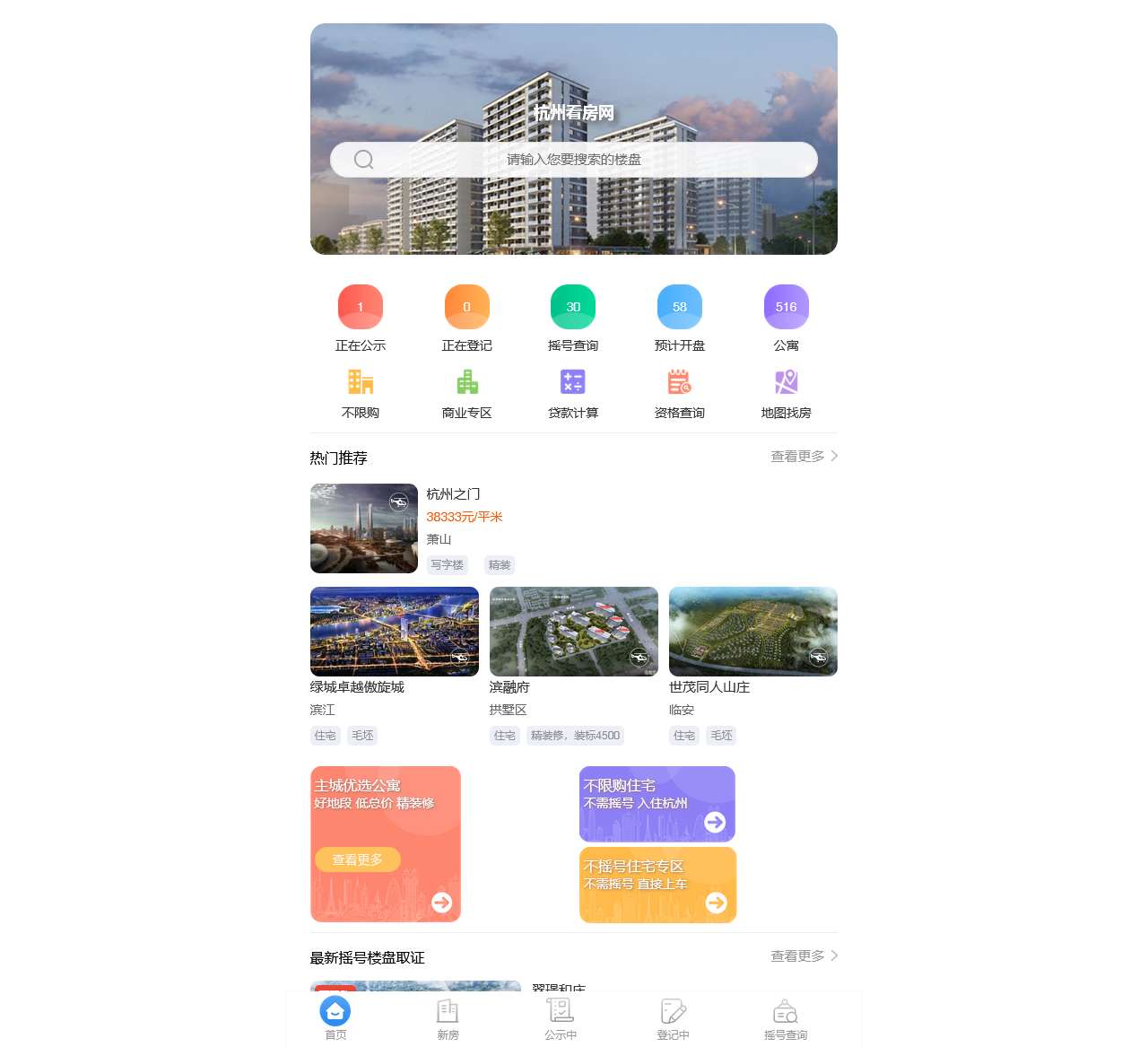 杭州最新楼盘摇号登记结果每日更新,杭州摇号新房一房一价表公示,新开摇号楼盘信息大全中签率/报名人数免费查询,杭州免费房产信息聚合网站,航拍全景身临其境!