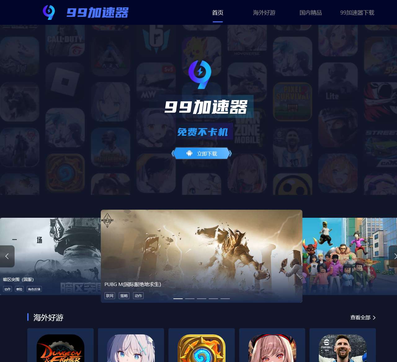 欢迎来到99加速器,您的畅游好游利器!我们致力于为玩家提供极速、稳定的网络加速服务,让您畅玩海内外精品游戏,无忧享受游戏乐趣。
