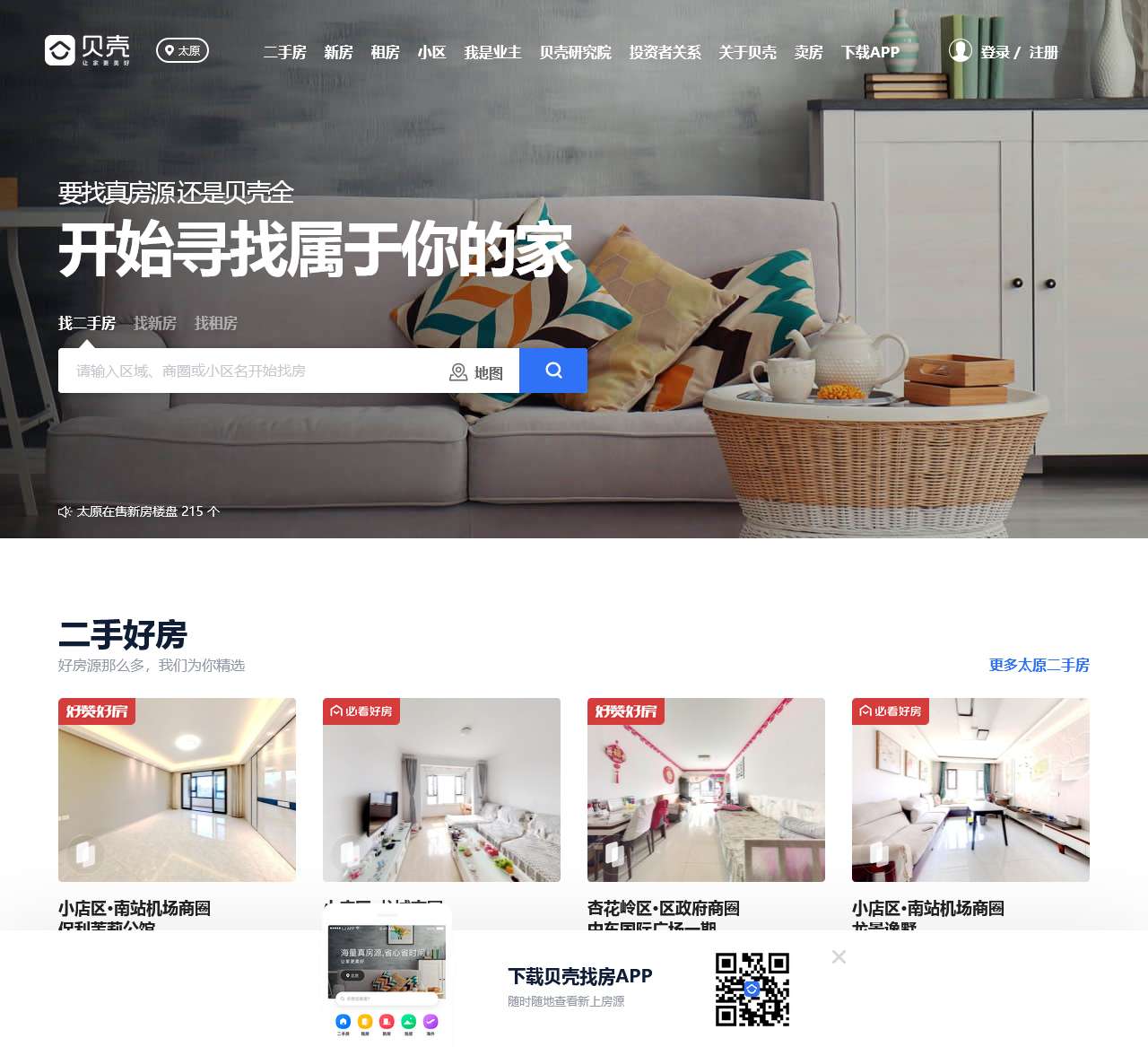 欢迎来到太原贝壳找房,您全方位的太原房产服务平台。我们提供二手房、租房、新房等多元化房产信息,让您轻松找到理想的居住空间。以下是我们网站首页的主要内容: