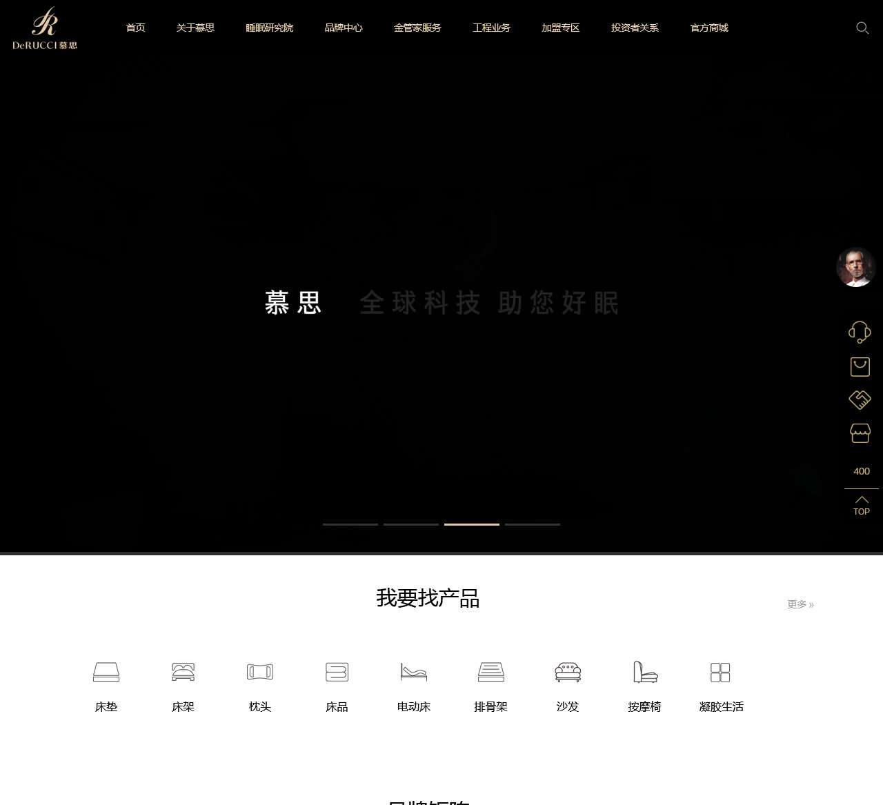 慕思DeRucci是全球十大床垫品牌,整合海内外健康睡眠资源,专业致力于人体健康睡眠研究,从事整套健康睡眠系统的研发、生产及营销,产品涵盖弹簧床垫、乳胶床垫、3d床垫以及床架、排骨架、床品、助眠产品等,全球拥有4000多家专卖店,远销10多个国家与地区。