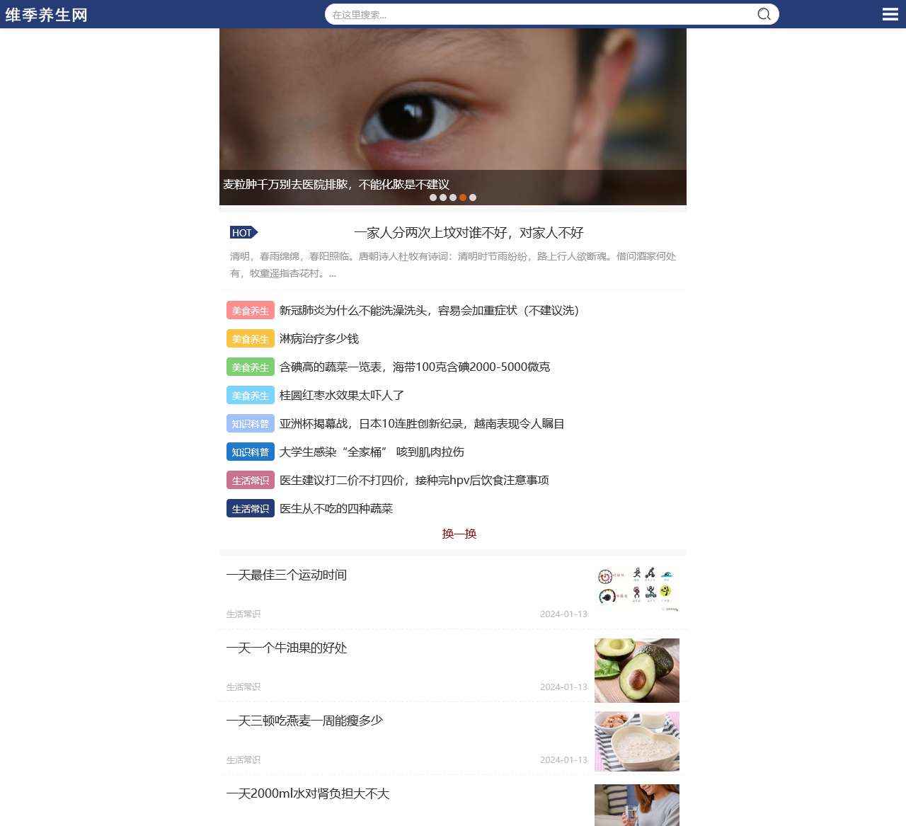 欢迎来到维季养生网,您的健康生活专家!我们致力于为您提供丰富的生活常识、知识科普、运动常识、美体塑形、美食养生、情感家庭等全方位健康资讯。通过本站,您将了解到有关健康生活的一切,让您每一天都过得更加健康、快乐。
