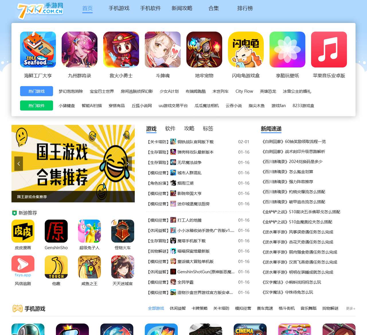 7k7k7游戏网尽力为手机游戏玩家搜索全网最新最热的手机游戏和手机软件,可以让玩家可以在第一时间了解到最新上线的手机游戏和手机软件,我们还会为玩家提供游戏和软件的教程,7k7k7游戏网将会是您值得收藏的网站。