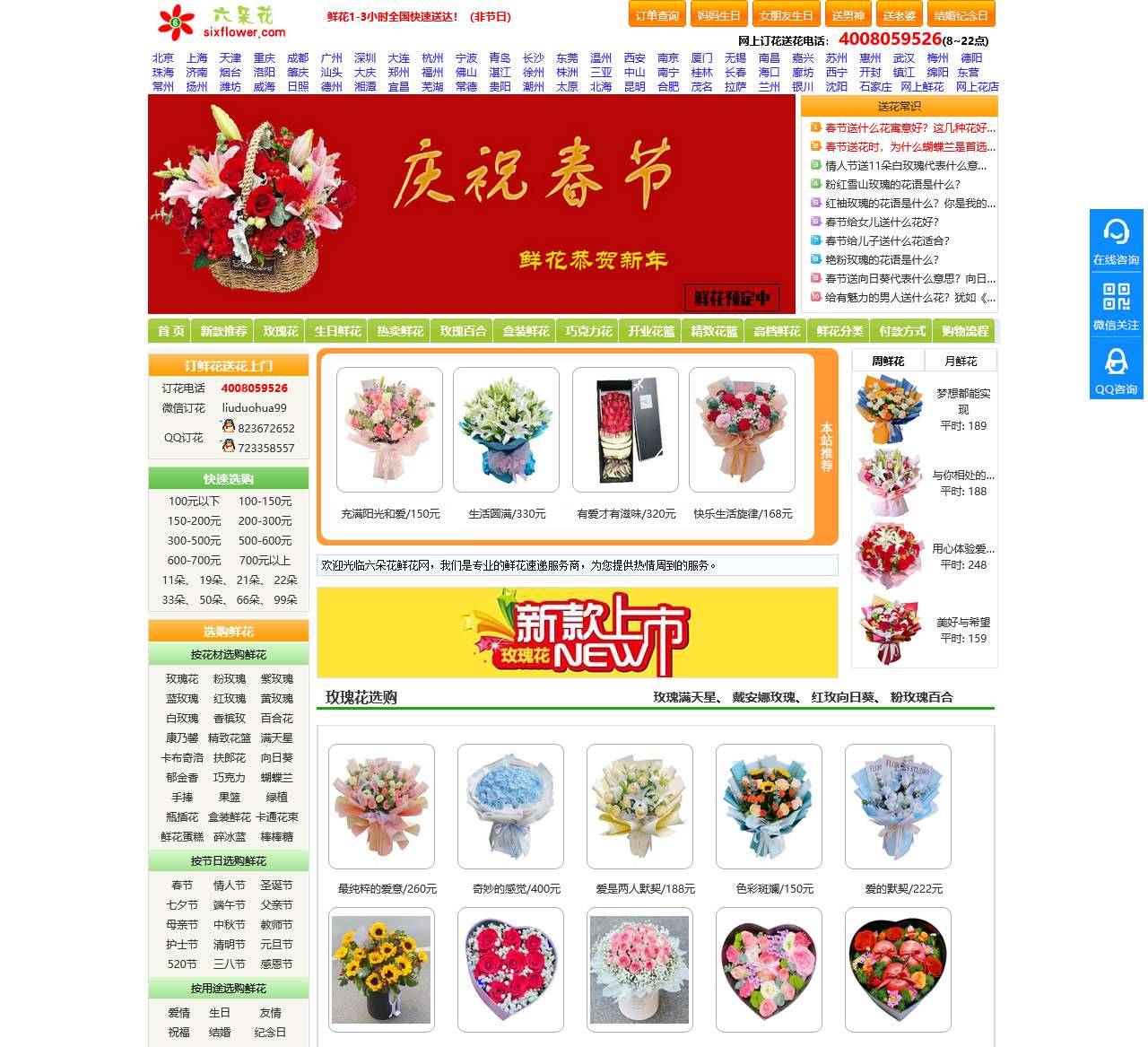 六朵花鲜花网是您网上订花的首选之地,提供丰富多彩的花礼选择,涵盖结婚纪念日、送老婆、送男神、女朋友生日、妈妈生日等多个场合,以及覆盖全国范围的订单查询服务。我们的送花服务覆盖全国各大城市,包括北京、上海、天津、重庆、成都、广州、深圳等地,确保您的心意能够及时送达。