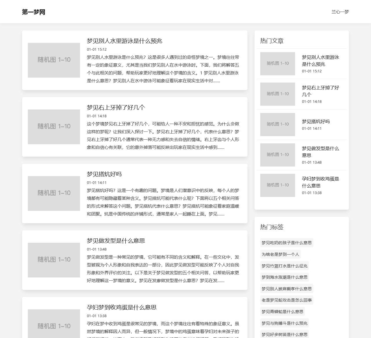 在第一梦网(网站链接)上,您将发现充满奇幻和神秘的梦境解密内容,让您更深入地了解心灵深处的信息。以下是网站首页内容的整理,以便更好地展示网站的特色和吸引力: