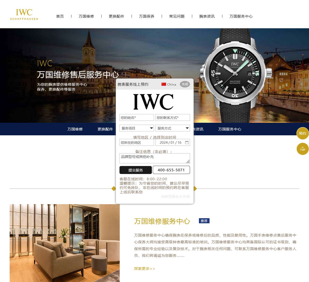 万国售后服务网点 | IWC手表(中国)万国官方授权维修网点