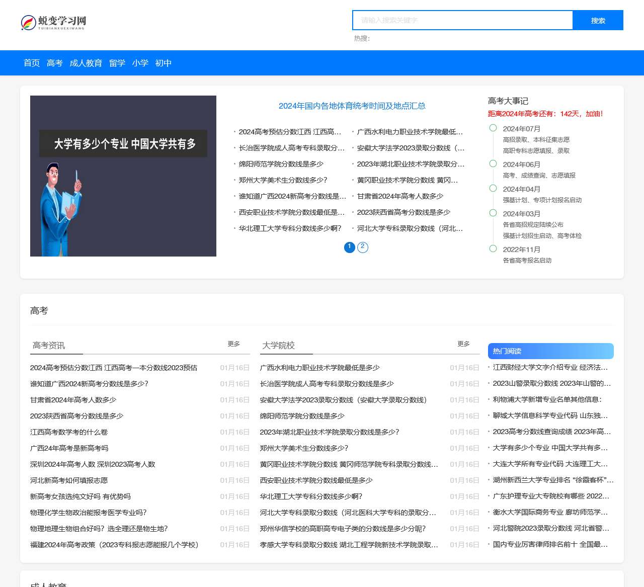 蜕变学习网是一个为广大学生和家长提供在线学习考试信息,以及知识资源分享的综合性教育信息网站,涵盖小学、初中、高中、大学、成人教育等各个阶段的教育信息和学习资料,欢迎大家关注!