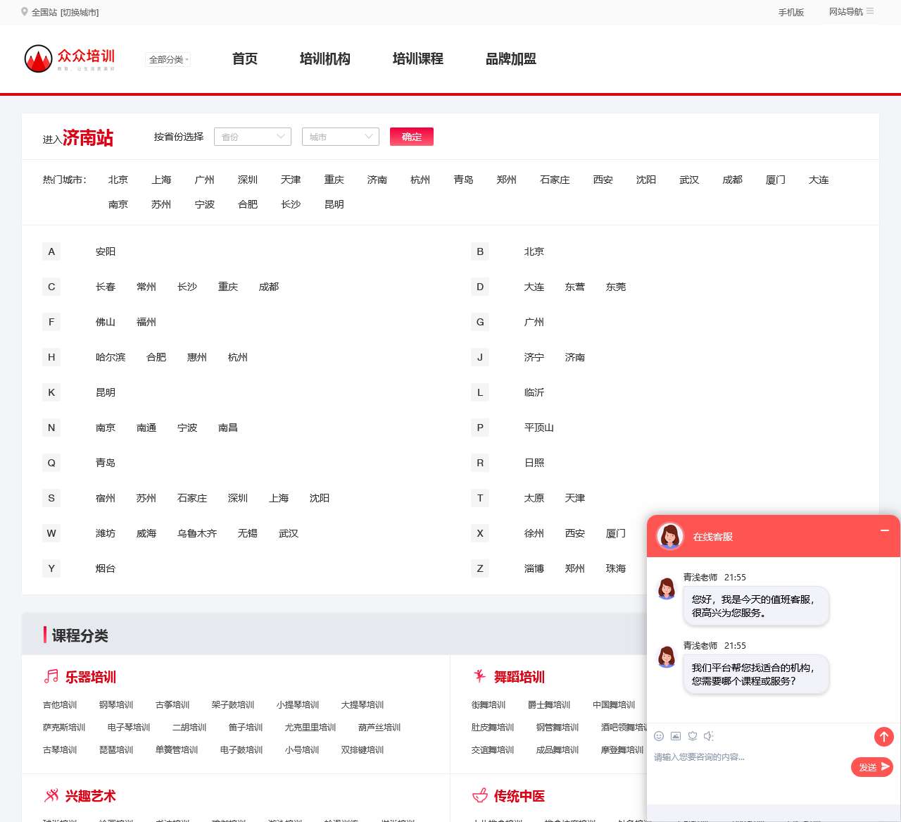 众众网培训频道整合优质的教育培训资源,打造优质的教育培训精品门户网站。帮助用户找到适合自己的教育品牌和培训课程,培训内容涉及英语,会计,建设工程,公务员,艺考,职业资格,公务员,考研,出国留学等各个方面。