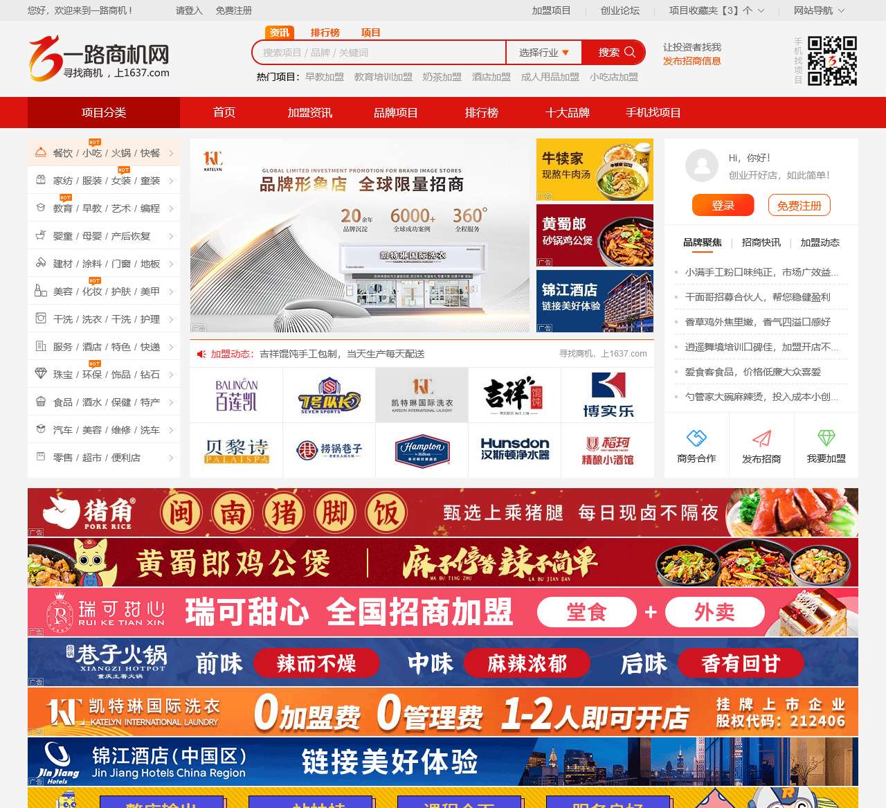 一路商机网(1637.com)是一个为投资者甄选优质创业项目的连锁加盟网站,精选6000多个国内外知名连锁加盟品牌,日逾2000名创业者在线找项目,是广大投资者搜索加盟项目,创业交流,经验分享的综合性创业平台。