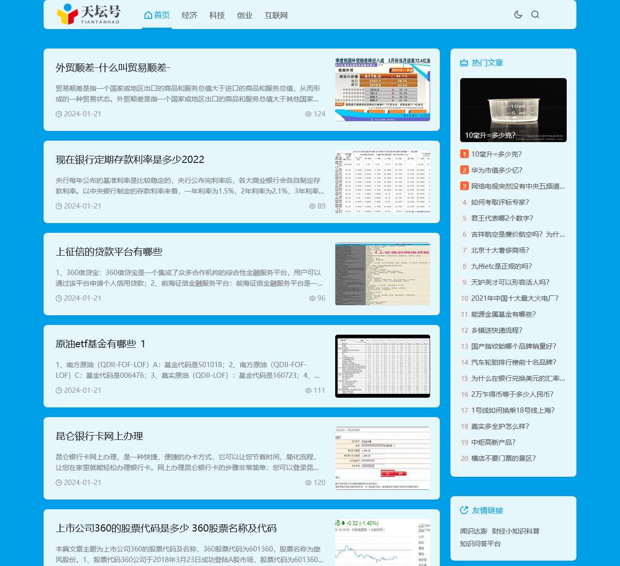 天坛号是一个综合性财经科技创业互联网平台,为您提供及时的经济、科技、创业和互联网信息。通过我们的平台,您可以了解到关于外贸顺差、银行定期存款利率、上征信的贷款平台、原油ETF基金等多方面的内容。