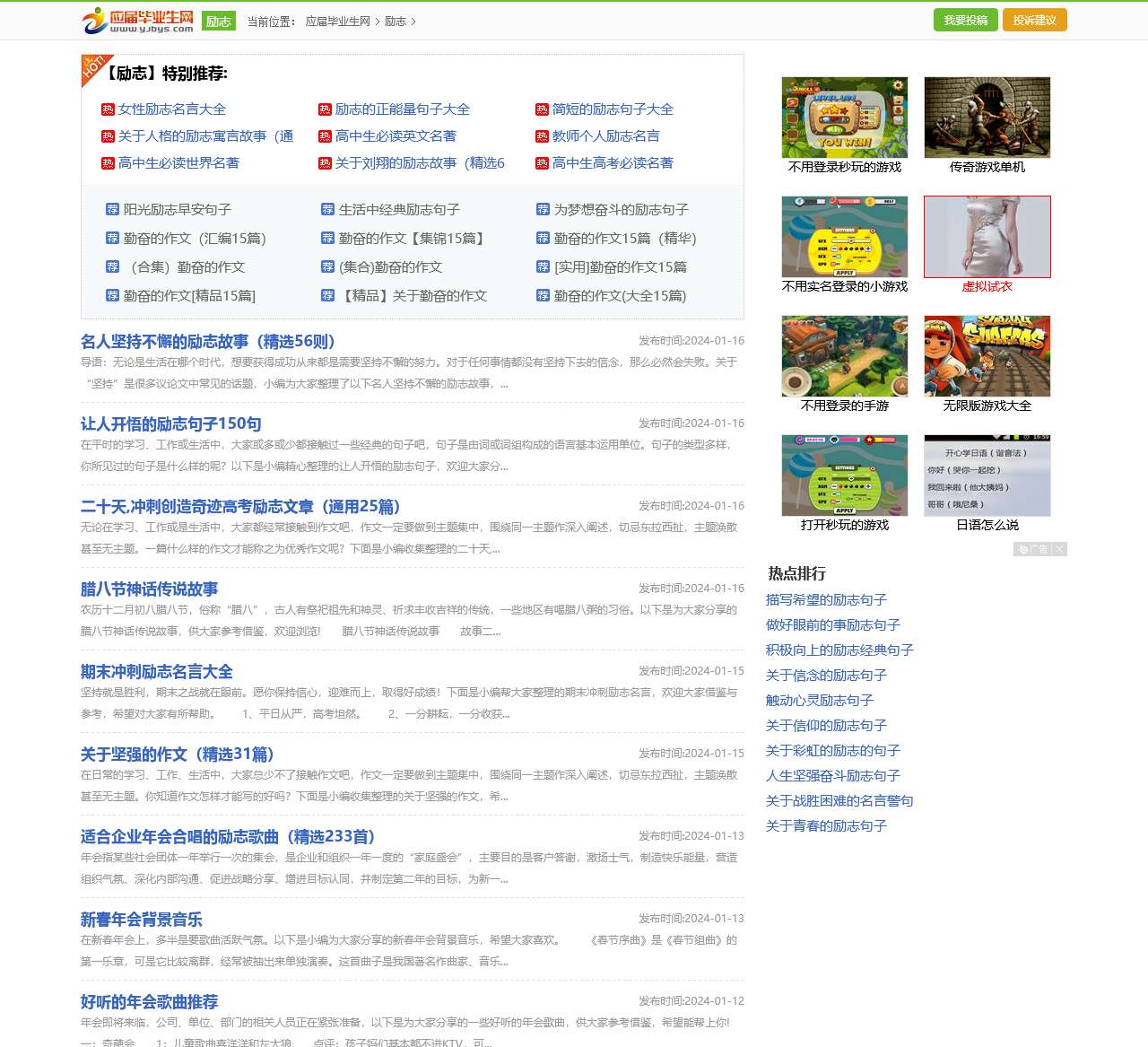 应届毕业生励志网与大家分享一些励志名言、励志文章、励志故事、励志电影、励志歌曲、励志书籍、励志演讲、励志语句、职场励志等关于励志方面的内容,激发大家的生活或工作热情,促进工作事业奋发向上。