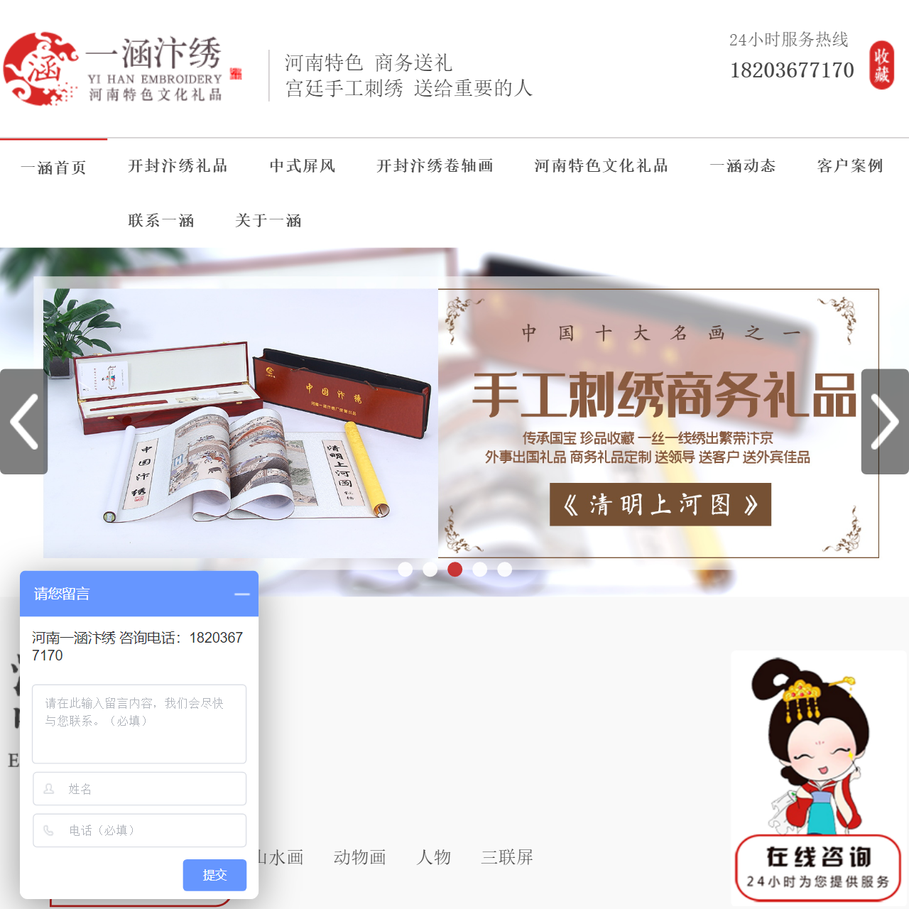 欢迎来到一涵汴绣,您的首选开封汴绣礼品厂家。我们专注于河南特色文化礼品的设计与制作,为您提供高品质的汴绣产品。无论是中式屏风、开封汴绣卷轴画,还是清明上河图、牡丹图等经典作品,我们都以精湛的针绣工艺和独特的设计风格为您呈现。