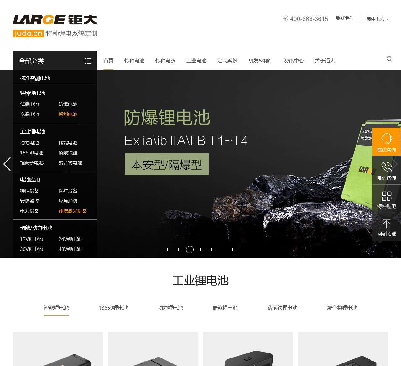 钜大锂电是一家专业定制锂电池生产厂家,致力于提供标准智能电池、特种锂电池、低温电池、防爆电池、宽温电池、智能电池等多种电池产品,广泛应用于工业、医疗、安防监控、电力设备等领域。我们的产品包括18650电池、磷酸铁锂电池、动力电池、储能电池等系列,满足用户不同需求。
