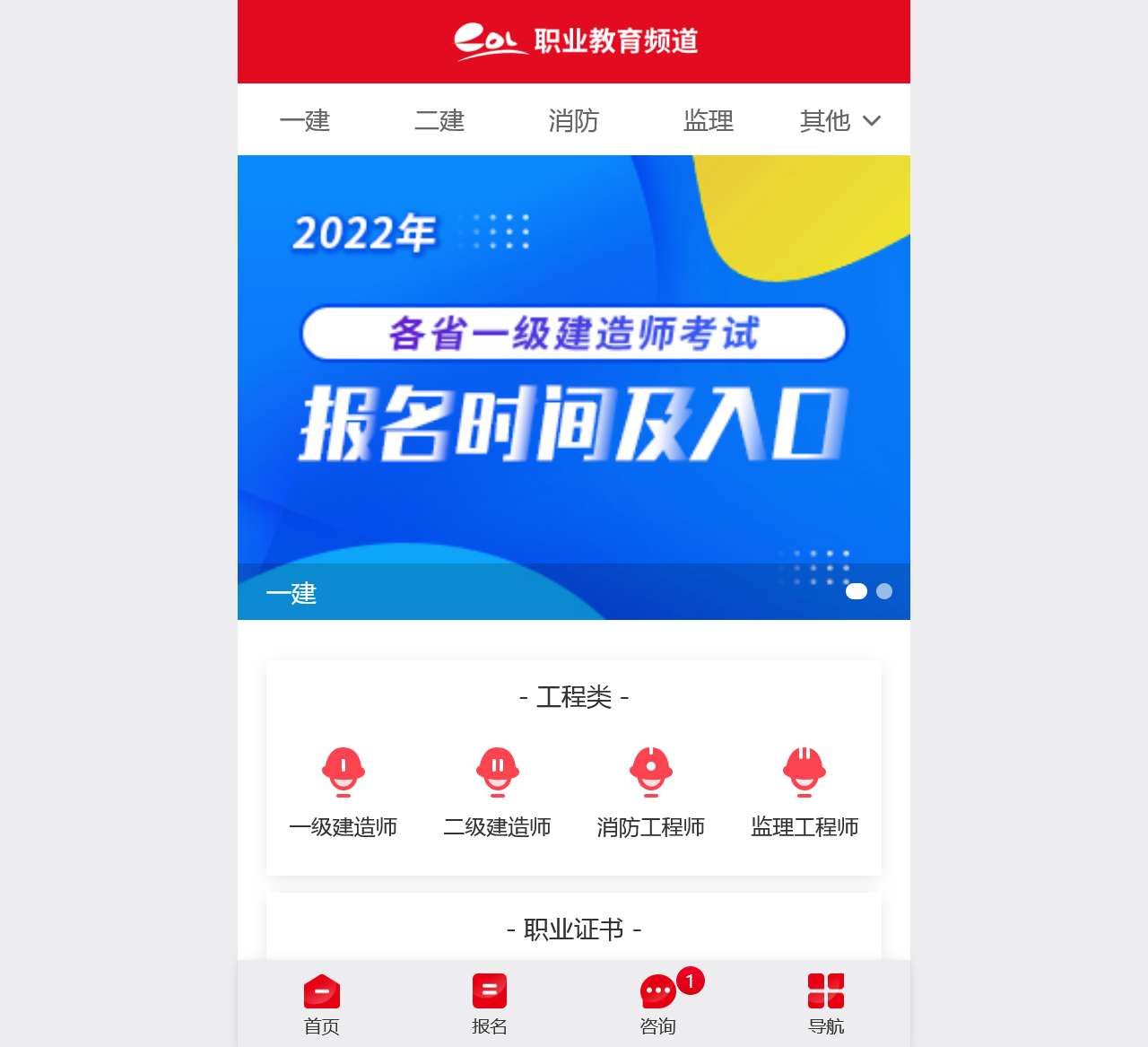 中国教育在线职业资格证考试频道发布多钟证书考试政策,包括一级建造师、二级建造师、消防工程师为主的建工类,和会计类、职业证书、IT类证书,提供考试报名入口、报名时间、考试时间、准考证打印、历年真题下载、成绩查询、证书领取、证书注册等信息