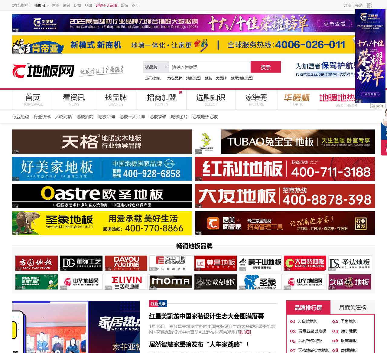 地板网是木地板行业的门户领跑者,提供全面的资讯、招商、品牌等服务。以下是地板网首页的品牌信息整理: