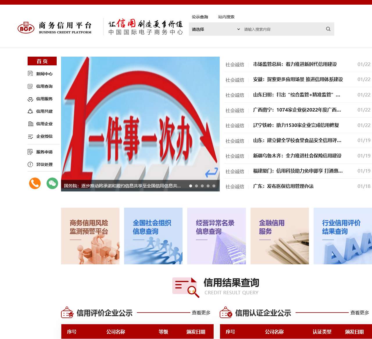 商务信用平台是由商务部信用办指导、50余家国家级商协会与APEC等国际组织指定,由中国国际电子商务中心(CIECC)建设的集认证、发布、查询和监督功能于一体的企业信用信息公共服务平台。