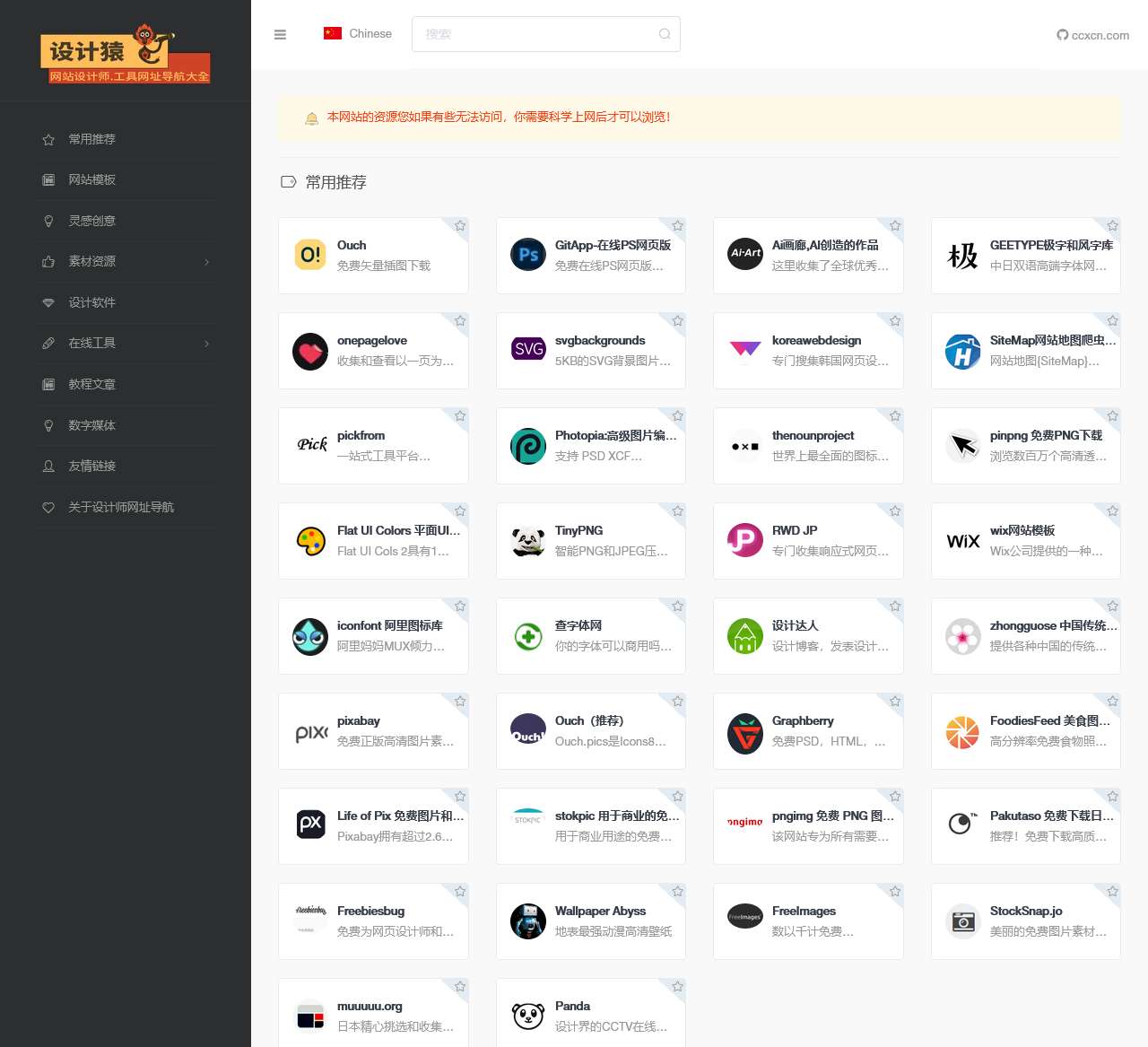 设计猿导航-收集方便网站设计师需要的免费素材工具及资源网址,包括:图标网址,网站模板,素材资源,配色,CSS3,原型图,矢量图刷下载,高清免费图库等网页设计师导航网址,周周更新,一站在手,省事省心!
