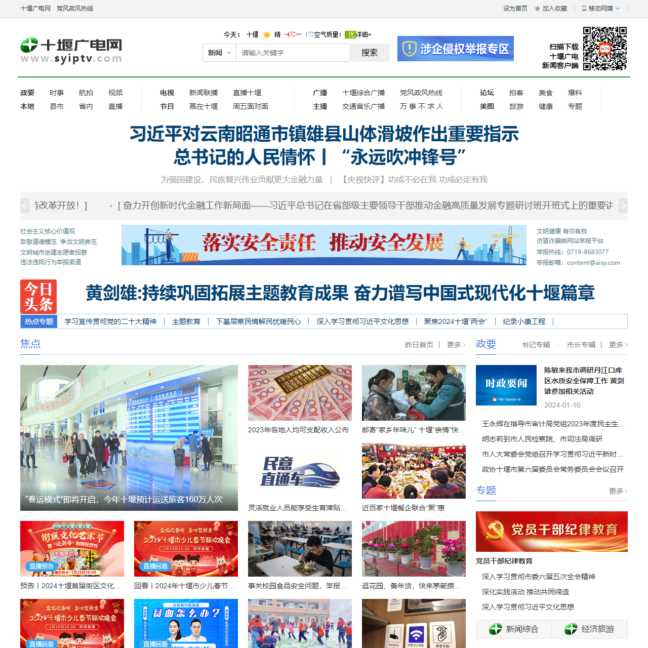 十堰广电网由中共十堰市委宣传部主管、十堰广播电视台主办,是十堰市新闻门户网站,全天候、全媒体发布新闻,重大事件第一时间现场直播,网站、客户端、手机网页同步浏览,随时随地网上看电视、听广播,为十堰市民提供全方位的本地资讯和宣传推广。